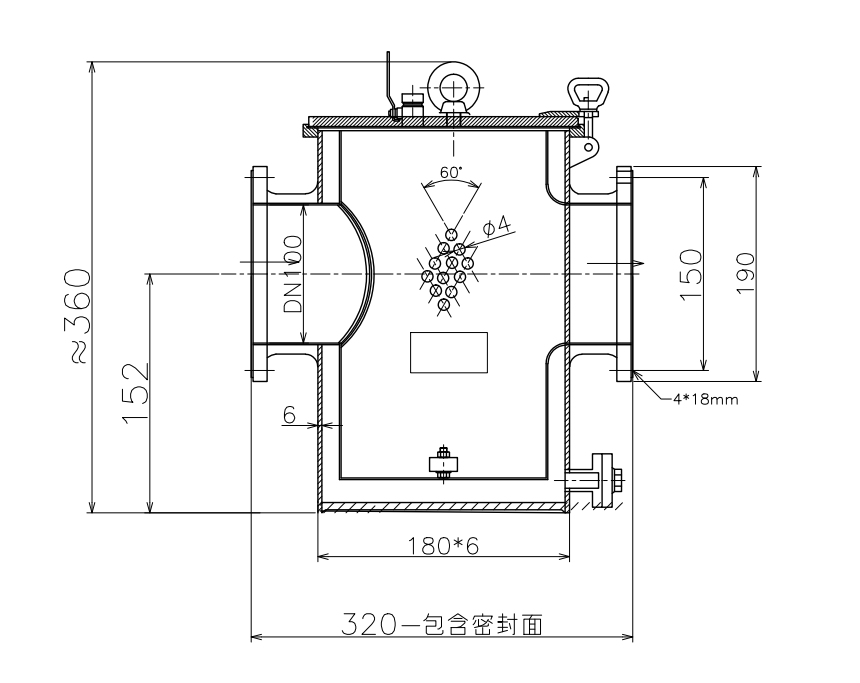 It is composed of cylinder, connecting pipe, flange, basket type stainless steel filter screen, cover plate, cover plate sealing gasket, air vent, sewage plug and cover plate fastener.