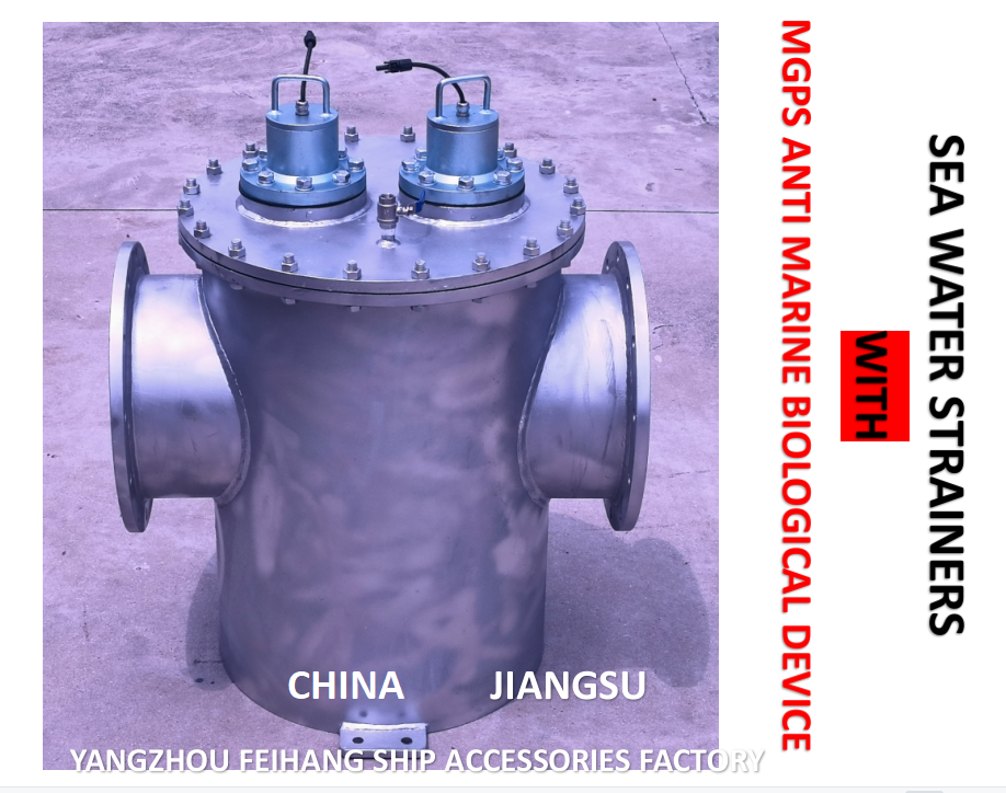 Today we will introduce a special seawater filter to you. As you can see from the above figure, this seawater filter is different from what we usually see. It is equipped with MGPS marine biological protection device.